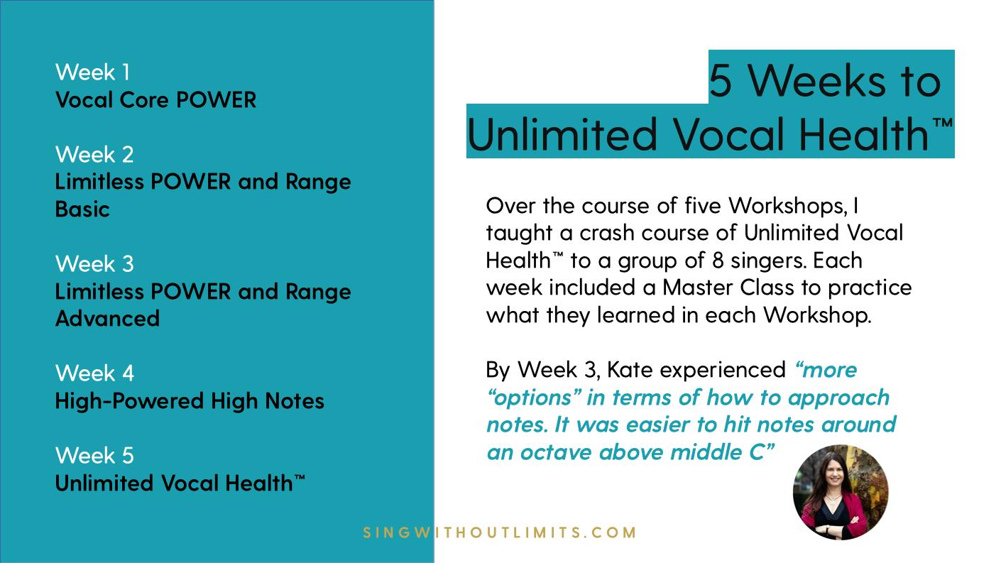 I’m most excited to know the difference between legit and belt voice and practice choosing how to sing and speak intentionally in a way that is healthiest for me.